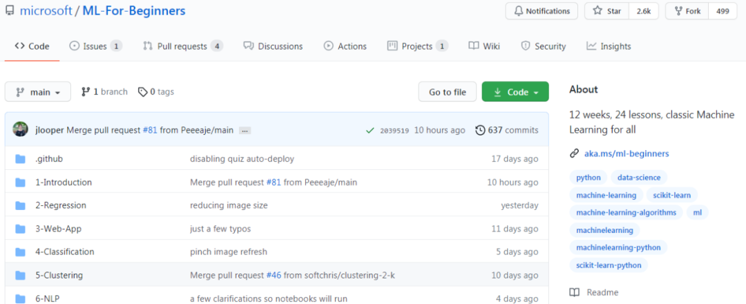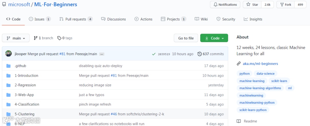 微软机器学习课程(Machine Learning for Beginners, Curriculum)来了,一天之内狂揽 2000 + 星。