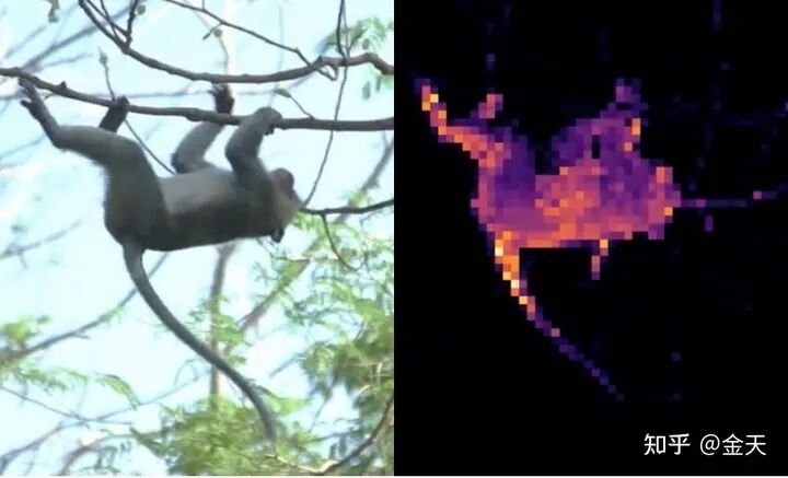 需要注意的是,这个是AttentionMap, dino并没有任何语义的ground truth, 也没有任何类别告诉它这是一只猴子,但是它可以把所有注意力学到在这上面.
