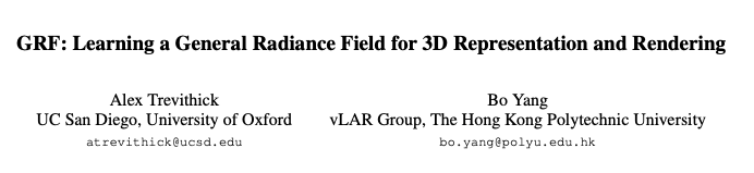 本文提出了结合多视角几何和注意力机制的通用神经辐射场 GRF,GRF的单个模型就可以推断出全新类别物体的高质量新视角合成图像。 >>加入极市CV技术交流群,走在计算机视觉的最前沿