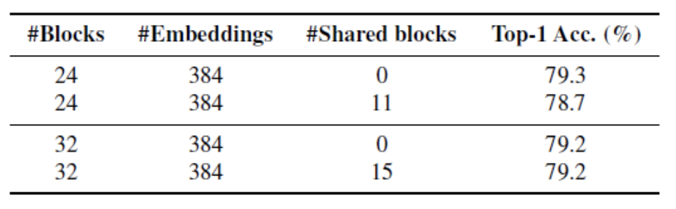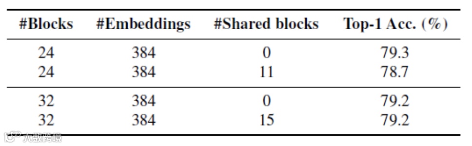 作者又对注意力坍塌这个问题做了进一步分析:如下图6所示的shared blocks这个参数代表把模型最后的这么多层的 和 设置为一模一样的值以后得到的Acc。比如说第2行的这个11,就代表把一个24层的ViT模型的最后11层的 和 设置为一模一样的值,使得最后11层的attention map也是一样的。发现掉点并不严重,这表明最后深层的attention map其实本来就很接近,即:注意力坍塌这个问题确实是存在的,使得简单地加深ViT模型是无效的。