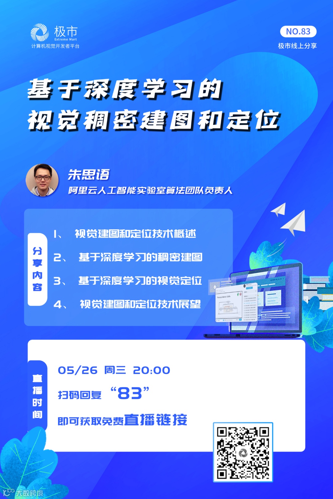 公众号后台回复“83”获取朱思语:基于深度学习的视觉稠密建图和定位~