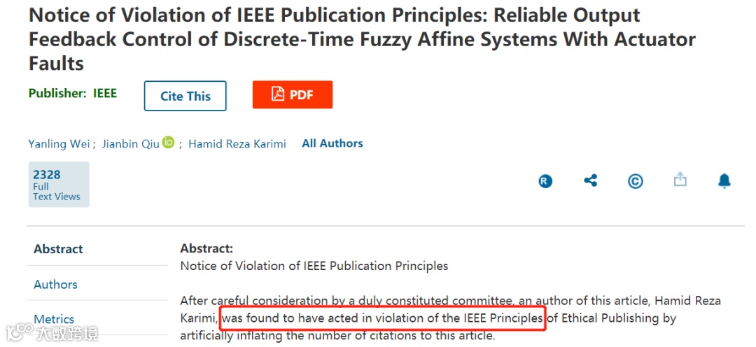近日,IEEE官网发布了一条公示,意大利米兰理工大学的Hamid Reza Karimi,因强迫他人引用论文《Reliable Output Feedback Control of Discrete-Time Fuzzy Affine Systems With Actuator Faults》,违反IEEE出版原则,被终身禁止在IEEE的刊物和会议上发表文章。