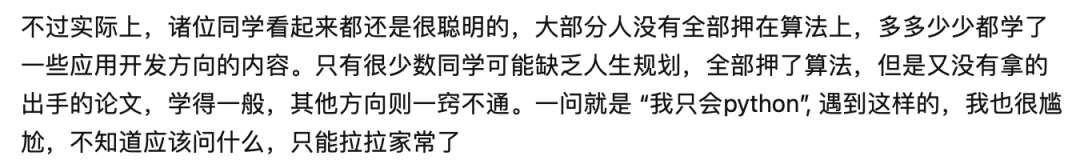 于是,就开始有人建议各位投算法简历的同学转去投开发吧!
