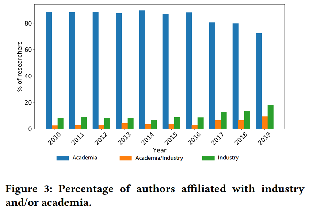 为了调查计算机视觉领域业界赞助的研究所占的比例,以及它们对该领域产生的影响,加拿大约克大学的一位博士生分析了 2010 至 2019 十年间 Top-5 计算机视觉会议上发表的近 15000 篇论文,展示了业界研究的变化趋势以及这些研究对社区的影响。 >>加入极市CV技术交流群,走在计算机视觉的最前沿