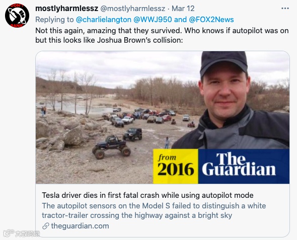 这已经不是特斯拉第一次与白色卡车相撞了。
