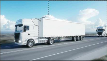 把白色卡车图片导入Photoshop,采用快速选择工具,试图把白色卡车的轮廓勾选出来,得到的结果是这样的: