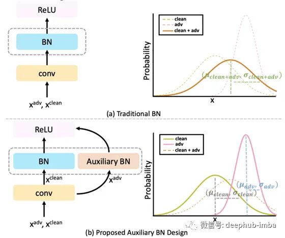 AdvProp:在训练中包含对抗性示例已被证明可以提高模型性能并导致更符合人类解释的特征 [4]。这项工作探索了干净和对抗性图像的联合训练模型。以前的工作探索了对抗样本的预训练模型,然后对干净的图像进行微调。虽然这提高了分类性能,但模型变得容易受到“灾难性遗忘”的影响,其中模型忘记了它在预训练阶段(在域转移的情况下)学习的特征。为了解决这个问题,提出了辅助批量归一化(BN)层来专门对对抗样本进行归一化。另一方面,正常的 BN 层用于标准化干净的图像。这允许归一化层根据干净样本和对抗样本的不同分布而表现不同。在推理过程中,辅助 BN 层被删除,而正常的 BN 层用于预测。这种训练机制与作为主干架构的 EfficientNet 一起在 ImageNet 分类精度上实现了前 1 名的 SOTA 性能。此外,AdvProp 在更难的 ImageNet 版本上实现了 SOTA 性能:ImageNet-a、ImageNet-c 和 Stylized ImageNet。此外,在训练中包括对抗样本也实现了目标检测的 SOTA [5]。