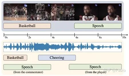 现有的音视频研究常常假设声音和视频信号中的事件是天然同步的,然而在日常视频中,同一时间可能音视频会存在不同的事件内容。比如一个视频画面播放的是足球赛,而声音听到的是解说员的话音。本文旨在精细化的研究分析视频中的事件,从视频和音频中分析出事件类别和其时间定位。我们针对通用视频,设计一套框架来从弱标签中学习这种精细化解析能力。该弱标签只是视频的标签(比如篮球赛、解说),并没有针对音视频轨道有区分标注,也没用时间位置标注。我们使用MIL(Multiple-instance Learning)来训练模型。然而,因为缺少时间标签,这种总体训练会损害网络的预测能力,可能在不同的时间上都会预测同样的事件。因此我们提出引入跨模态对比学习,来引导注意力网络关注到当前时刻的底层信息,避免被全局上下文信息主导。此外,我们希望能精准地分析出到底是视频还是音频中包含这个弱标签信息。因此,我们设计了一套通过交换音视频轨道来获取与模态相关的标签的算法,来去除掉模态无关的监督信号。具体来说,我们将一个视频与一个无关视频(标签不重合的视频)进行音视频轨道互换。我们对互换后的新视频进行标签预测。如果他对某事件类别的预测还是非常高的置信度,那么我们认为这个仅存的模态轨道里确实可能包含这个事件。否则,我们认为这个事件只在另一个模态中出现。通过这样的操作,我们可以为每个模态获取不同的标签。我们用这些改过的标签重新训练网络,避免了网络被模糊的全局标签误导,从而获得了更高的视频解析性能。