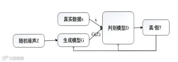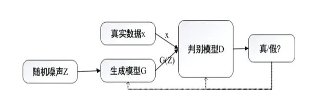 Goodfellow等在2014年首次提出了生成式对抗网络( generative adversarial networks,GAN),GAN采用了博弈论中二人零和博弈的思想(即二人的利益之和为零,一方的所得正是另一方的所失),由一个生成器和一个判别器构成。生成器捕捉真实数据样本的潜在分布,并生成新的数据样本;判别器是一个二分类器,判别输入的是真实数据还是生成数据。生成器和判别器均可采用深度神经网络模型实现,其结构如图6所示。