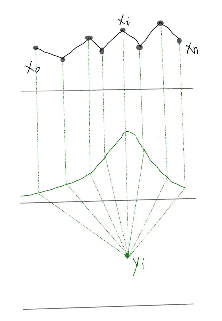 Self-attention是一个序列到序列的操作:一个向量的序列作为输入,一个向量的序列作为输出。我们把输入的序列定义为 ,并且与它相关的输出向量是 。这两个向量的维度都是 。那么对于每一个点 ,我们都可以通过一个不同的权重值,来将它转化为一个新的序列,这个新的序列就可能是我们原始序列的一个更好的表示,这些 就是一组attention的值。