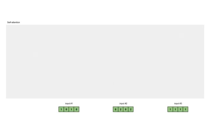 得到结果向量[2.0, 7.0, 1.5](深绿色)就是ouput1的和其他key交互的query representation。