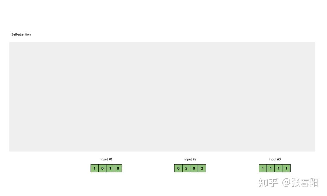 为了获取input1的attention score,我们使用点乘来处理所有的key和query,包括它自己的key和value。这样我们就能够得到3个key的表示(因为我们有3个输入),我们就获得了3个attention score(蓝色)。