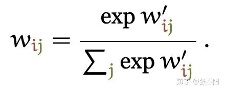 然后我们把权重值 转换成正值并且确保它们的和为1,我们使用一个row-wise的softmax。