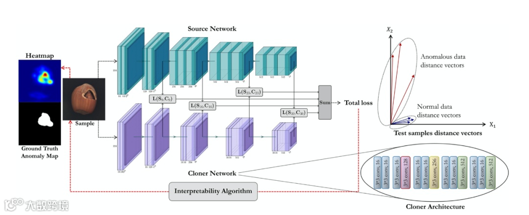 本文将 ImageNet 预训练的无异常数据专家网络的中间知识“提取”成一个更紧凑的克隆网络,然后利用它们对不同样本的不同行为,为寻找异常检测和定位的区别性标准提供了一个新的方向。没有使用密集的基于区域的培训和测试,将可解释性算法纳入文中用于异常区域定位的新框架中。尽管一些测试数据集和 ImageNet 之间存在显着对比,但与 MNIST、F-MNIST、CIFAR-10、MVTecAD、Retinal-OCT 和两个医学数据集上的异常检测和定位的 SOTA 方法相比具有明显的竞争力,甚至远超 ImageNet 领域取得的成果。
