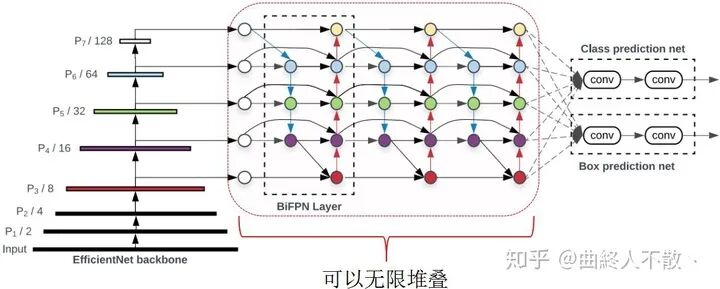 EfficientDet通过重复堆叠多个Bi-FPN block来获得性能的提升。
