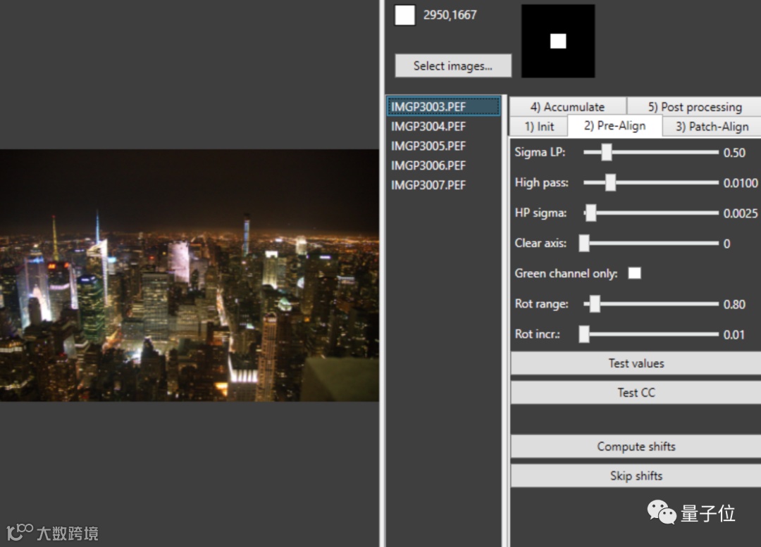 然后,将这些彼此之间略有差异的图像帧,进行对齐、融合,就可以得到一张每个像素位置都有红、绿、蓝三通道值的图像。