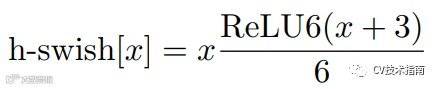 然而swish虽然提高了精度,但sigmoid函数计算是极为昂贵的,在嵌入式移动端不适合它的存在,因此,MobileNet_V3提出了计算更为简便的h-swish函数,其定义如下: