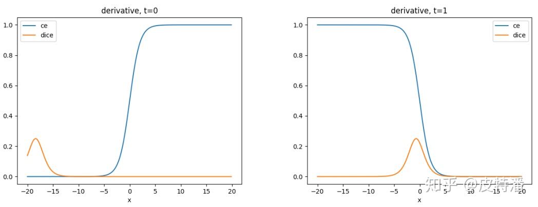 从dice loss的定义可以看出,dice loss 是一种区域相关的loss。意味着某像素点的loss以及梯度值不仅和该点的label以及预测值相关,和其他点的label以及预测值也相关,这点和ce (交叉熵cross entropy) loss 不同。因此分析起来比较复杂,这里我们简化一下,首先从loss曲线和求导曲线对单点输出方式分析。然后对于多点输出的情况,利用模拟预测输出来分析其梯度。而多分类softmax是sigmoid的一种推广,本质一样,所以这里只考虑sigmoid输出的二分类问题,首先sigmoid函数定义如下: