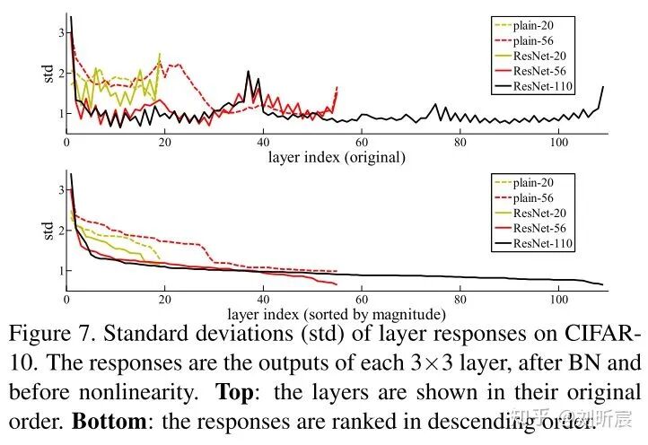 ) might be generally closer to zero than the non-residual functions.When there are more layers, an individual layer of ResNets tends to modify the signal less.(也就是后面逐渐就接近identity mapping,要拟合的残差越来越小,离目标越来越近)
