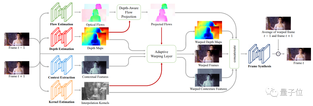 以DAIN的算法为例,如果要预测t时刻的帧,就需要t时刻的前后两帧视频,通过光流预测算法来实现。