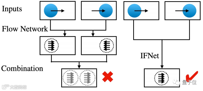 相比于利用前一帧和后一帧进行两次估计,这里的IFNET (a Specialized and Efficient Intermediate Flow Network)算法,将直接采用线性运动假设,对中间帧进行一次估计。