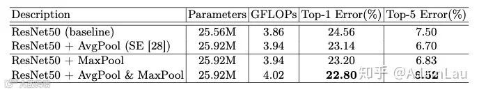用maxpooling与avgpooling一起比SENet(仅用avgpooling)效果更好。