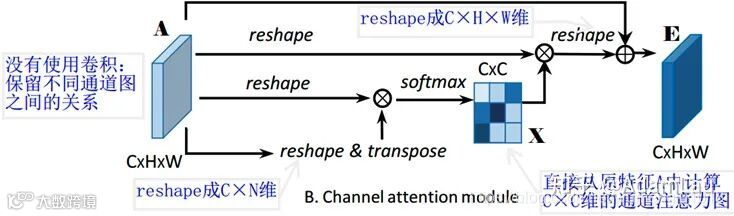 总的来说,DANet网络主要思想是 CBAM 和 non-local 的融合变形。把deep feature map进行spatial-wise self-attention,同时也进行channel-wise self-attetnion,最后将两个结果进行 element-wise sum 融合。