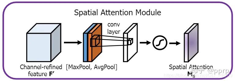 class SpatialAttention(nn.Module):def __init__(self, kernel_size=7):super(SpatialAttention, self).__init__()assert kernel_size in (3,7), "kernel size must be 3 or 7"padding = 3 if kernel_size == 7 else 1self.conv = nn.Conv2d(2,1,kernel_size, padding=padding, bias=False)self.sigmoid = nn.Sigmoid()def forward(self, x):avgout = torch.mean(x, dim=1, keepdim=True)maxout, _ = torch.max(x, dim=1, keepdim=True)x = torch.cat([avgout, maxout], dim=1)x = self.conv(x)return self.sigmoid(x)