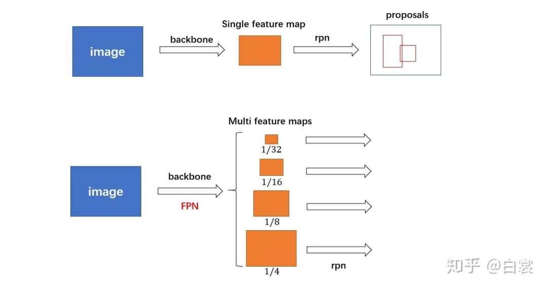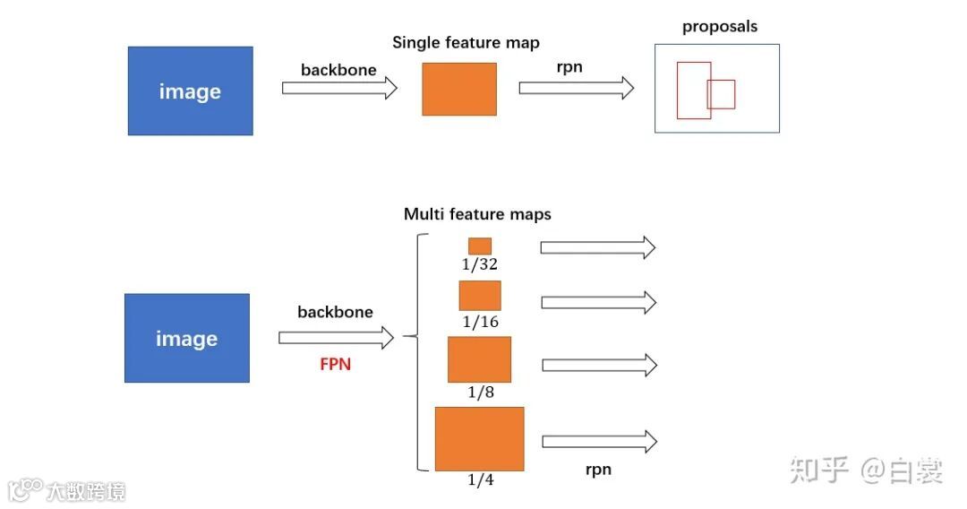 简单的说,带有FPN的FasterRCNN网络结构可以用下图表示:
