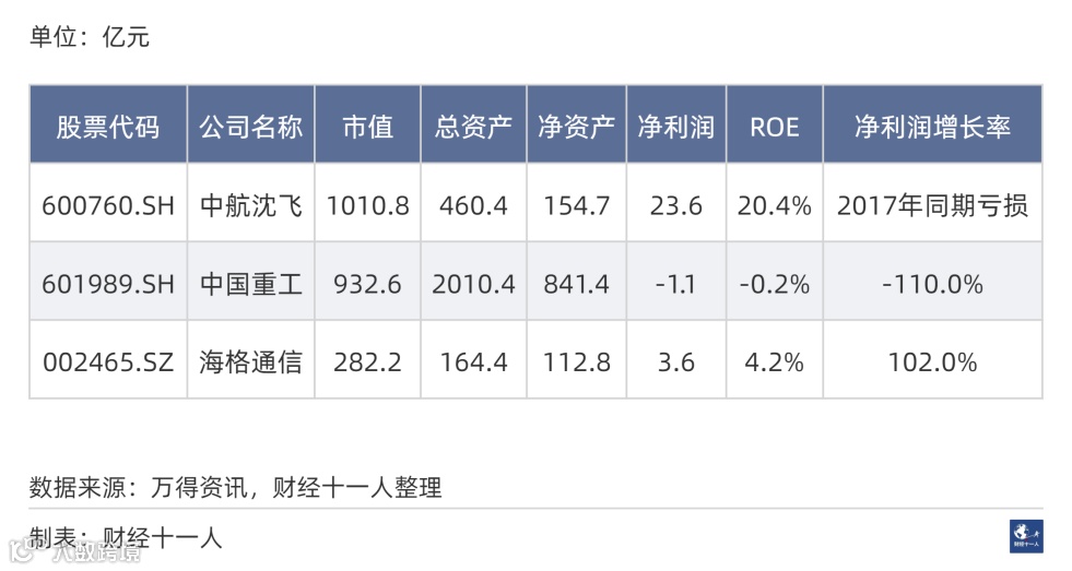 表11是兵器之外的军工行业2017年以来的一些基本情况统计,从表11可以看到如下信息。