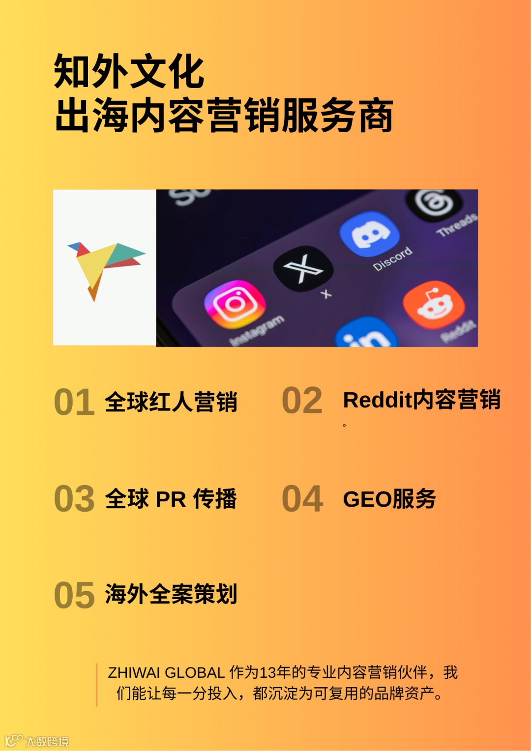 这也是知外文化目前为科技与 AI 品牌提供的三大核心服务方向:系统性的 Reddit 内容运营、与 Reddit 深度联动的 GEO 内容建设,以及基于全球知名博主与行业专家资源的红人共创营销——帮助预算有限的团队,把有限的子弹用在“深信任增长”上,而不是一轮轮转瞬即逝的曝光。