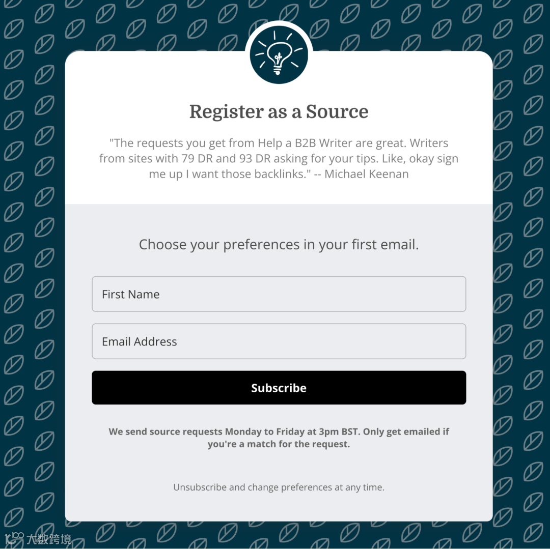 让Help a B2B Writer与众不同的是,你可以让记者知道你希望他们链接到哪里。这与HARO不同,后者的链接总是跳转至你的网站主页。而在这个平台,你可以指定跳转至某个确切的页面。这极大的有助于建立主题(topical)权威是很好的。例如,如果你的网页被一篇主题是关于联盟营销的文章引用,并链接到你的网站上同一主题的一个页面,这将比一般的主页链接更有助于建立主题权威。Help a B2B Writer 缺点