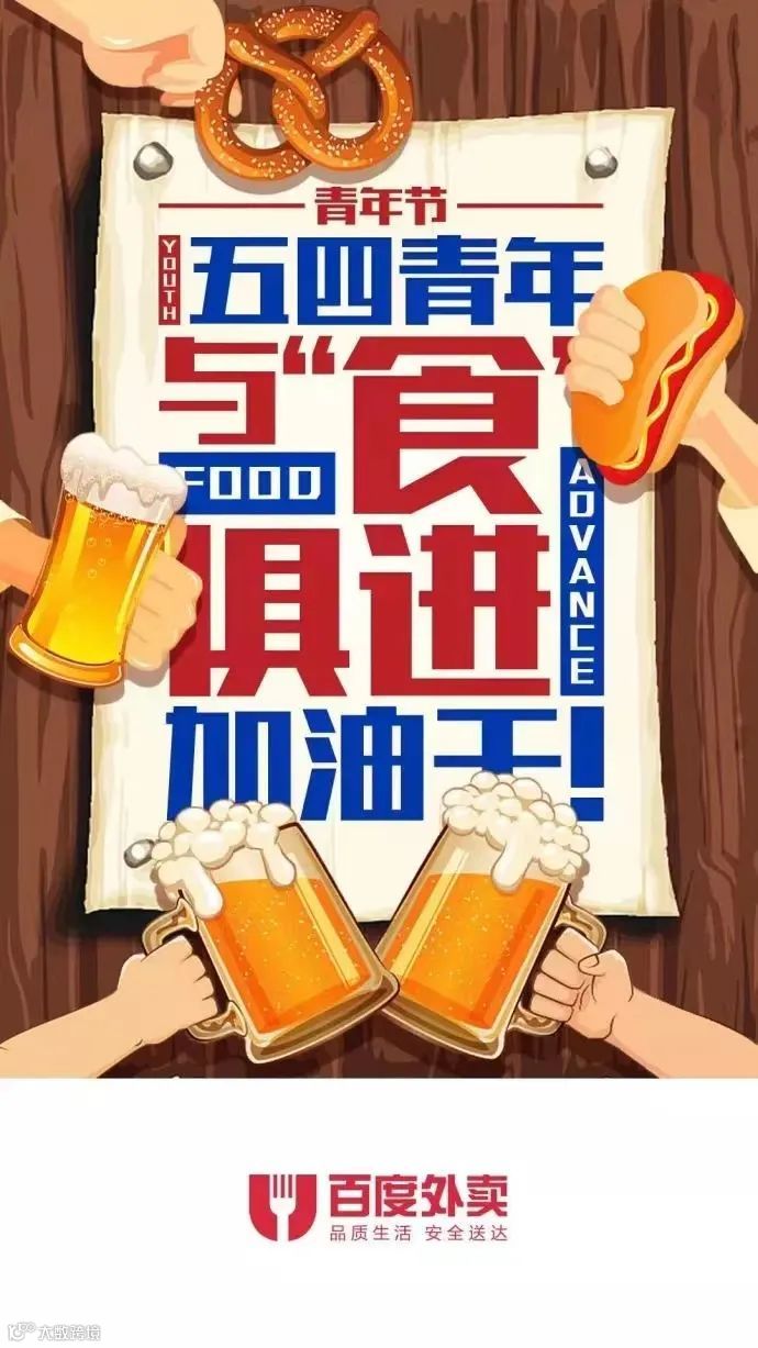 百度外卖通过“五四青年 与食俱进 加油干”谐音文案,增强趣味性,但需注意玩梗适度。