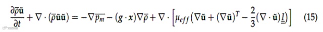 现在介绍用于描述环境区域的模型。控制方程是从纳维-斯托克斯方程推导而来的,经过应用大涡模拟(LES)滤波过程并使用Favre均值变量[23]。通过考虑一个通用的变量,引入以下符号: