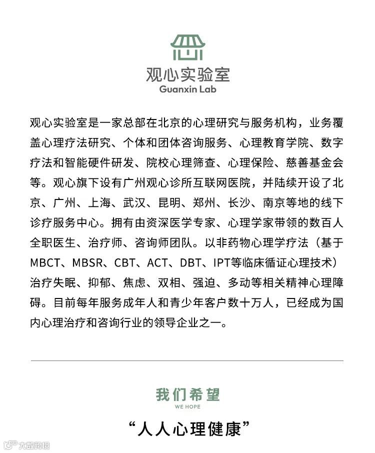 观心实验室正在做的,就是把这套国际先进模式系统化地在中国心理健康领域落地,开花,结果。