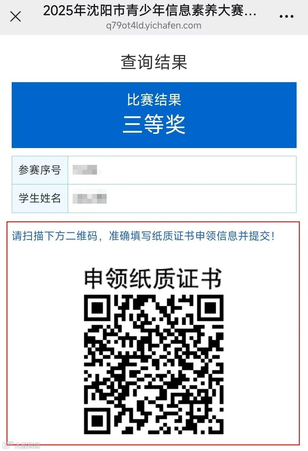请扫描下方二维码进行查询并完成证书申领。
