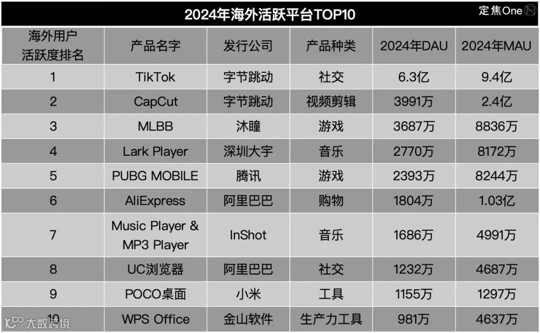 随着全球化加速,中国APP正深度融入海外用户的日常生活。基于Sensor Tower发布的2024年全年海外用户活跃数据(日活与月活),本文梳理出海外最受欢迎的TOP100中国APP,揭示其成功逻辑与行业趋势。