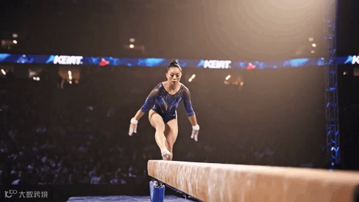 测试三:「体操运动员在平衡木上翻转,电影感」