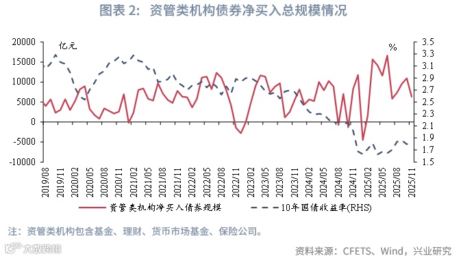 资管机构购债力度分化,净买入规模减少较多。具体分机构来看,11月:
