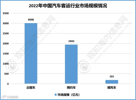观知海内咨询披露的数据显示,2022年,中国汽车客运行业市场规模中出租车市场规模为3008亿元,其中网约车市场规模为1942亿元,占比64.56%,顺风车规模为191亿元,仅占比6.35%,是不折不扣的“边缘”市场。