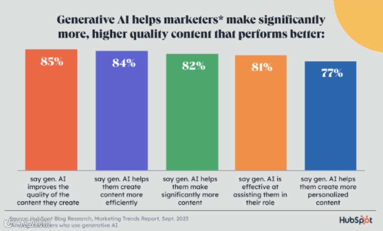 最重要的是,56% 使用生成式人工智能进行内容创建的营销人员表示,这种内容比没有使用生成式人工智能创建的内容效果更好。