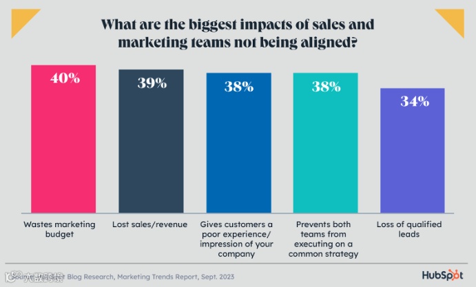 那么,当销售和营销团队不一致时,实际上会发生什么?营销人员表示,他们的预算被浪费了,销售和潜在客户也流失了,而且客户最终得到了糟糕的体验。与销售团队不一致的营销人员相比,表示今年的营销策略非常有效的营销人员的可能性高出 26%。