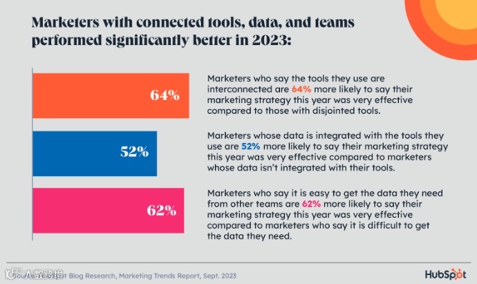 我们的调查还发现,拥有互联工具、数据和团队的营销人员在 2023 年的表现明显更好。
