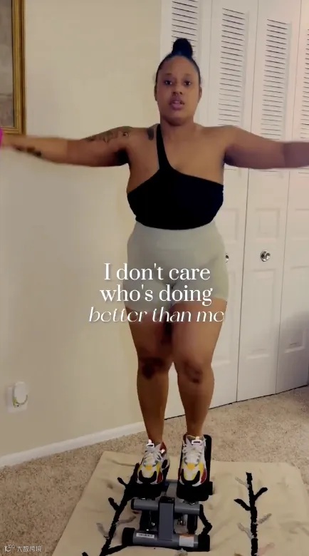 TikTok相关视频的评论区,有人表示这个跨境爆款健身器材比办健身房的会员卡便宜得多,让她重新燃起了锻炼的积极性。不可否认的是,正向反馈是让人获得锻炼动力的重要因素。Sunny Health & Fitness在推广自家迷你踏步机时也选择了这样的形式,广告中的女士在积极使用踏步机和哑铃配合锻炼,画面浮现出一些正能量的口号式的文字,显得十分励志。