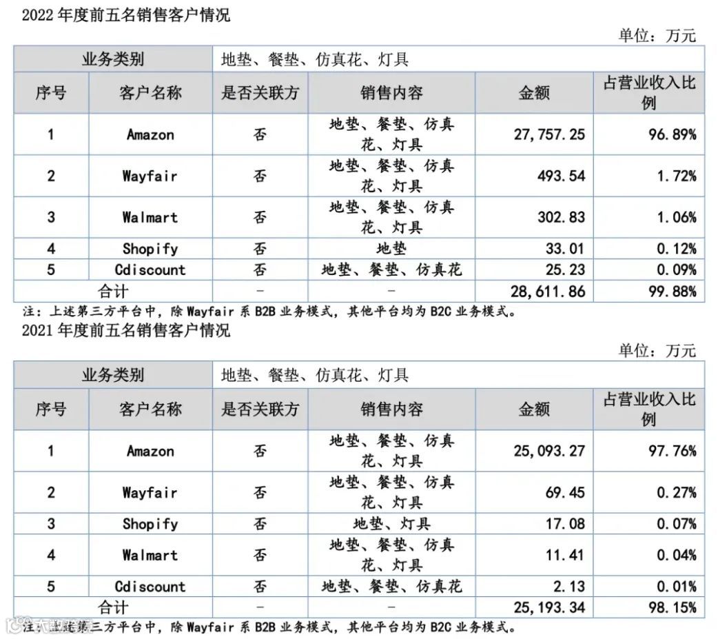 亚马逊是镁锦股份的主要销售渠道,2021年和2022年,来自亚马逊的收入占比都超过95%