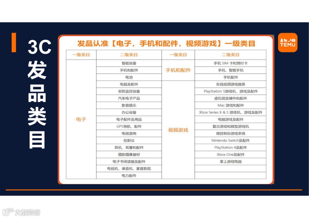 TEMU的主营品类涵盖了3C电子电工、灯具、智能家居/家具/家电、汽车电子、办公电子等多个领域,旨在为消费者提供一站式的智能生活解决方案。