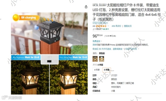 这款产品于2023年6月29日在亚马逊平台上架,(截至2024年3月22日)在亚马逊平台的评分为4.6颗星,拥有443条来自买家的评论。在【户外柱灯】商品排行榜中排名第20名。在过去的一个月,有100+的顾客购买了该产品。