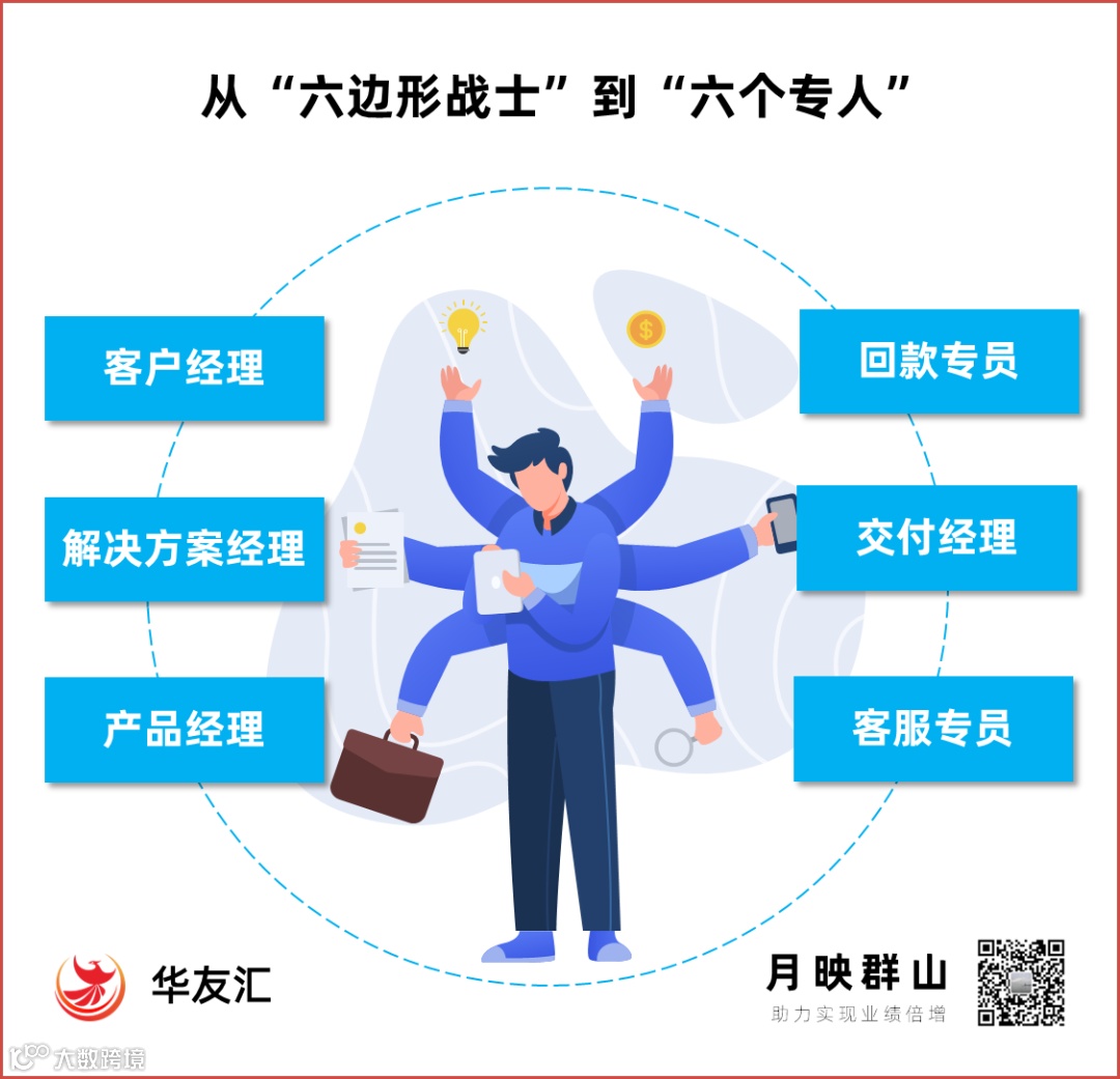 很多企业在招聘时都希望找到全能人才,以销售岗位举例,要求是一个销售同时要承担6个角色,要做好客户经理,也要做产品经理,还要做解决方案经理、交付经理、回款专员,甚至还要做客服专员。