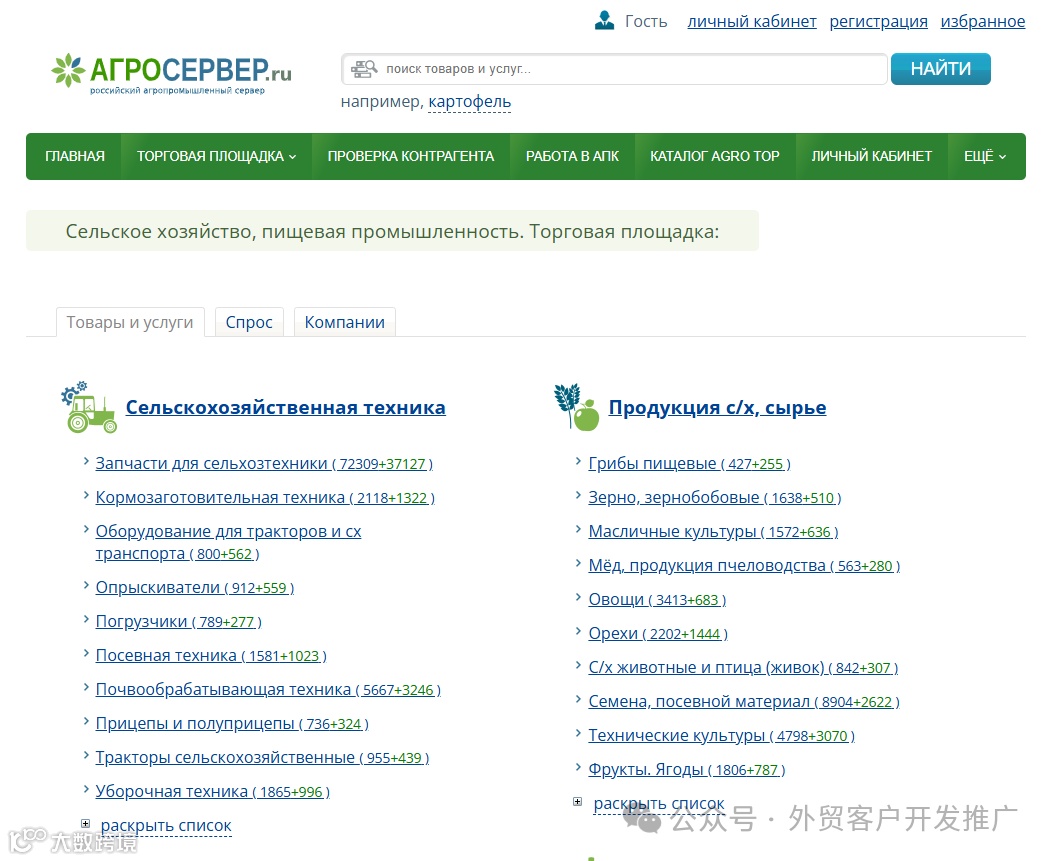 :俄罗斯领先的B2B平台,月访问量约100万,涵盖310万种商品与服务,覆盖全国1400个城市,适合各类企业入驻。