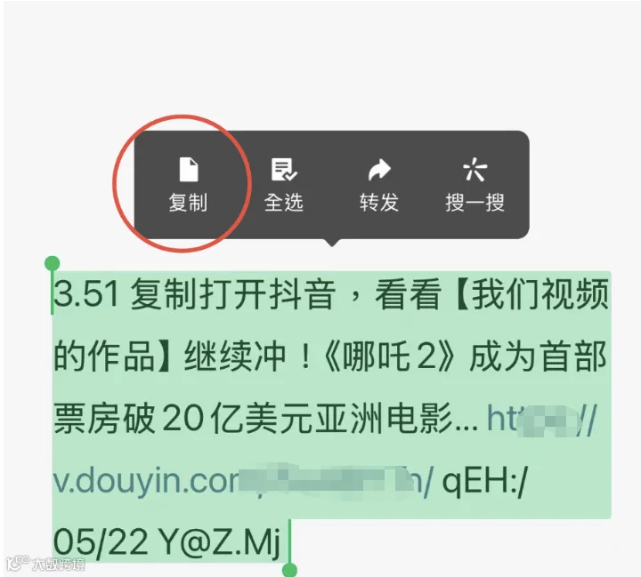 要是长辈不太会操作手机,建议用「方法三」直接把视频文件发给他们,或者耐心指导他们完成这个操作:「收到链接后不要点,长按消息复制,然后打开抖音」。